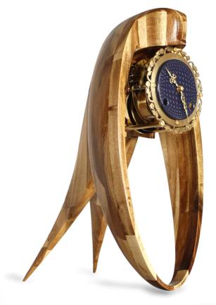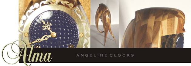 Alegorična ura Alma je poklon slovenski kozmopolitanki Almi Karlin (1889-1950), pisateljici, prevajalki, poliglotki, etnologinji, botanistki in nominiranki za Nobelovo nagrado za književnost. Telo ure je izdelano iz laminirane akacije, lakirano z akrilnim lakom. V leseno telo je vstavljena medeninasta rezljana urna rozeta, ki nosi osemdnevni bim-bam mehanizem Hermle W0130-070. Pred medeninasto urno luneto ACAD gravirano v stilu Guilloche in lakirano v pariško modro tečeta kazalca tipa Louis XV. Allegorical clock Alma (Karlin) is dedicated to first Slovenian cosmopolitan woman Alma Karlin (1889-1950), writer, eight language translater, polyglote, ethonologist, botanist, nominated for Nobel prize: laminated acacia; fine cutout brass clock rosete; Guilloche ACAD graved clock lunete coloured in Paris blue; 8-days bim-bam winding clock mechanism Hermle, Grosheim, Germany; clock hands type Louis XV. Dimensions: 16/23/35 cm Price: 2500 EUR at direct order. Delivery: Slovenia: Free »white gloves delivery«. EU countries: 280 EUR »white gloves delivery«. Worldwide: 450 EUR post delivery Honorable Mentioned by International Art Festival Commitee, NY, USA Contributed to the Contemporary Art Festival Art Cloud #3, Florence, Italy Exhibited at CSUCG in Chateau Petrović, Podgorica, Montenegro Exhibited in Ana K. Holm—Art gallery, Leck, Germany Exhibited at International Art Fair Oxford, UK Exhibited at Grant show »Angelines«, Šivčeva hiša Gallery, Radovljica, Slovenia |