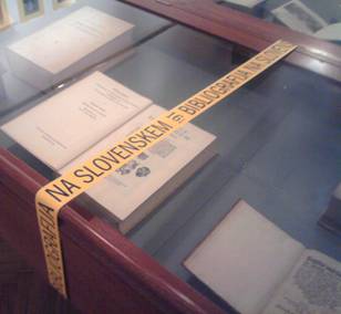 Podoba razstave Bibliografija na Slovenskem v Narodni in univerzitetni knjižnici, avtorja Veselina Miškovića.
